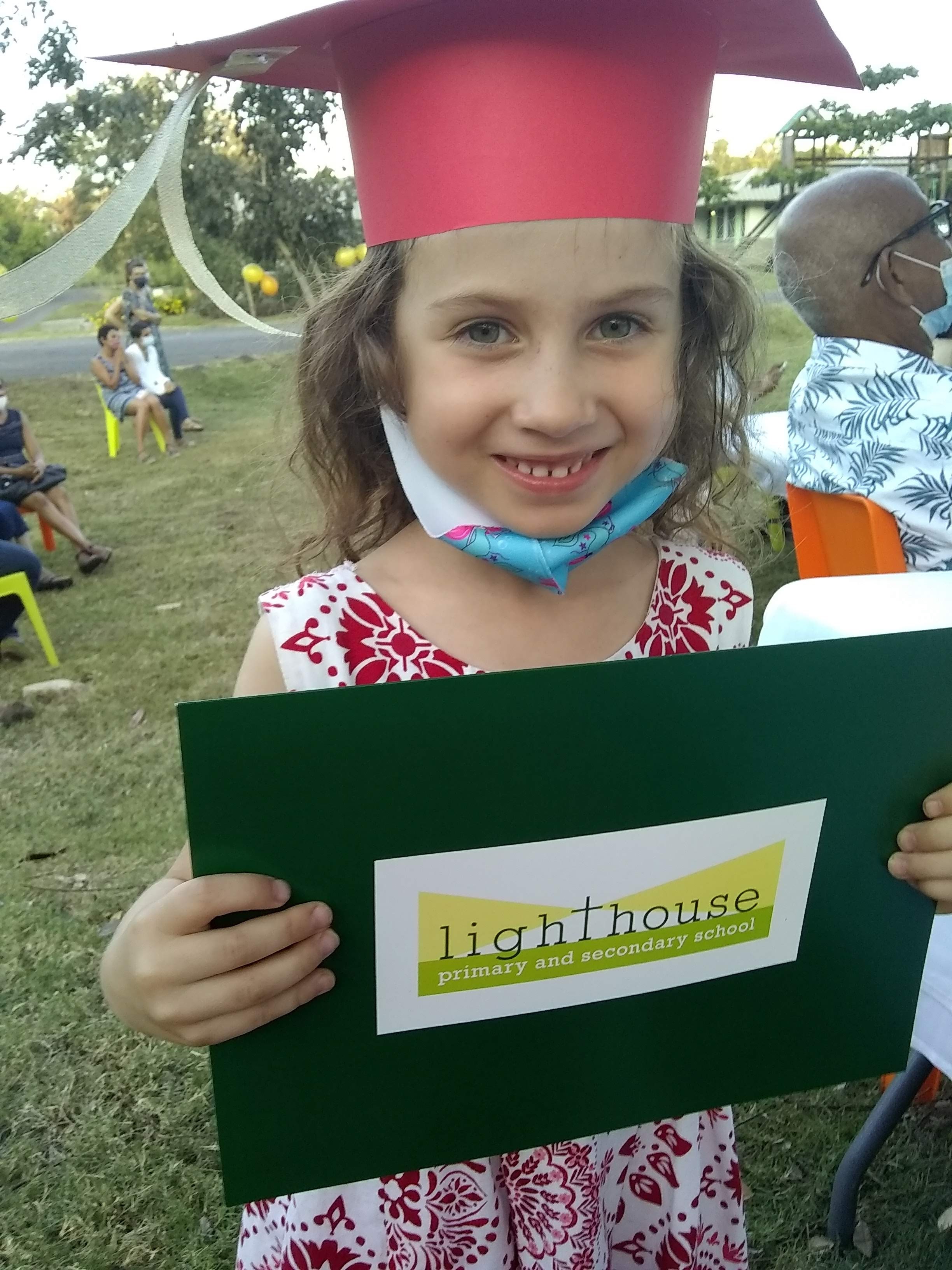 The school year ended online again (thanks Delta variant), but Lighthouse was still able to hold various graduation and recognition ceremonies outdoors with limited attendees. First, Eden and her peers in the Reception class had a ceremony to mark the end of their preschool year and their promotion to Grade 1 where they start wearing uniforms and are officially in the primary school.
